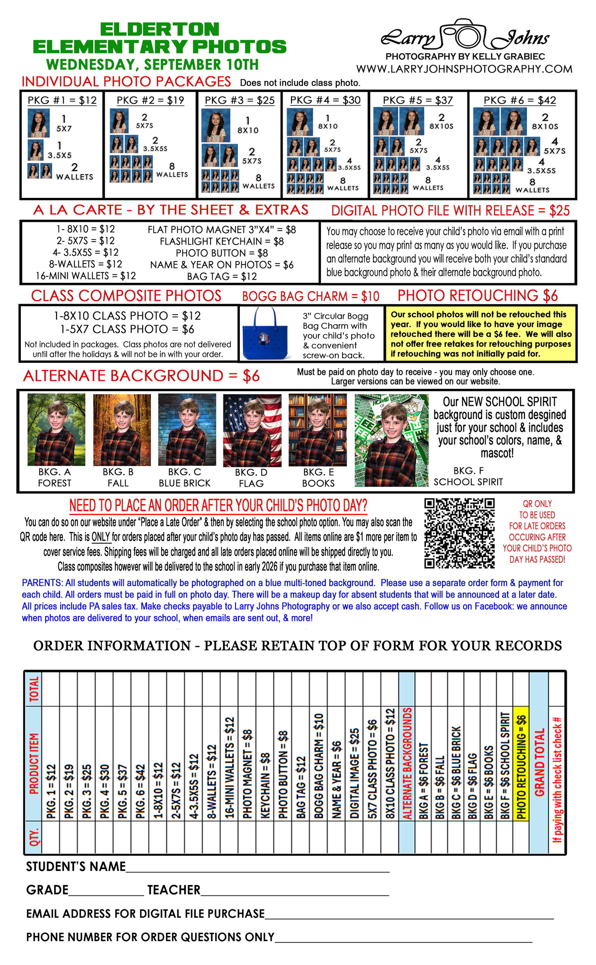 BELOW ARE SAMPLES OF THE ALTERNATE BACKGROUND OPTIONS FOR OUR 2025-2026 SCHOOL PHOTOS AS WELL AS A LIST OF DATES FOR OUR SCHOOLS THAT WE CURRENTLY HAVE SCHEDULED & A CURRENT PRICE LIST FOR THIS YEAR.